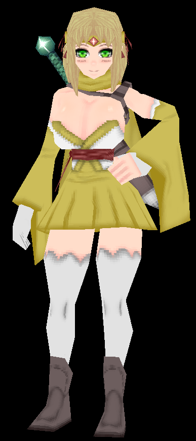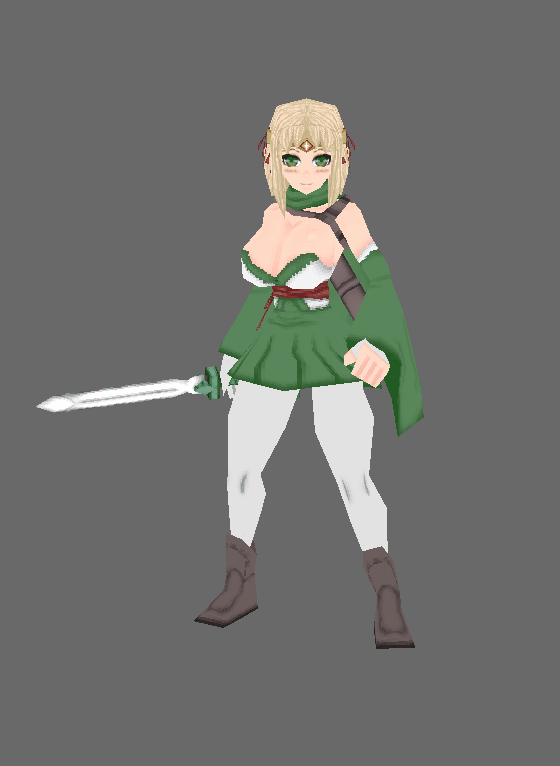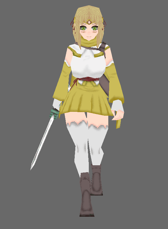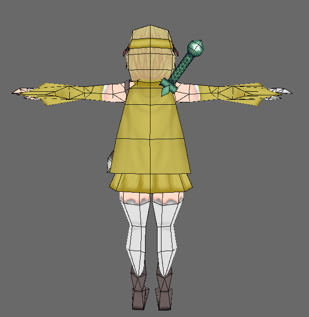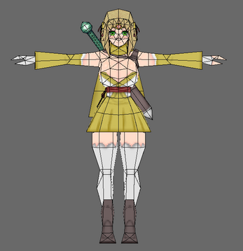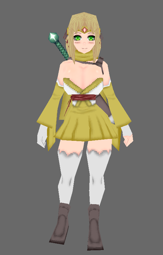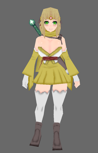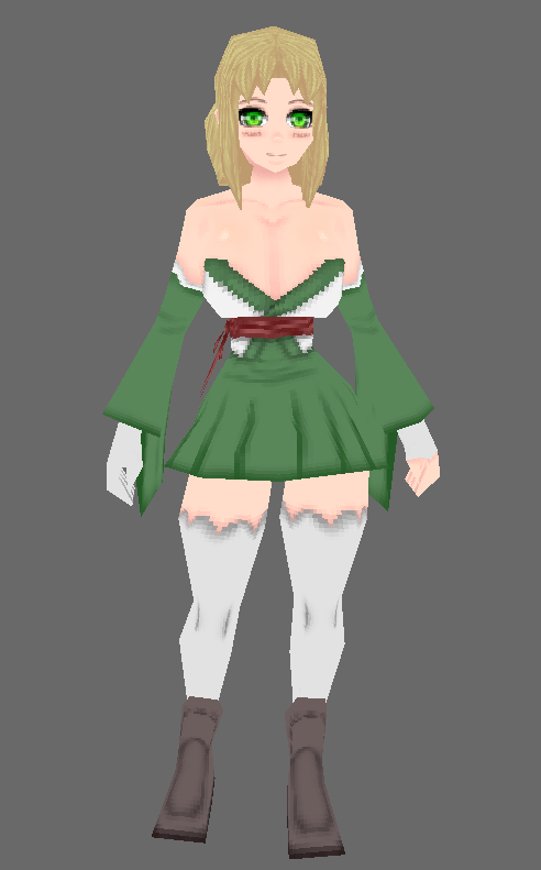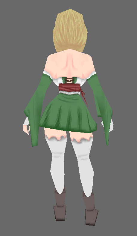 Outfit: There are a total of 18 outfit textures. 3 different color options (yellow, green, grey) of 2 different outfits, all of each have 3 different versions of leg wear/tights. All outfit textures are in 256 x 256