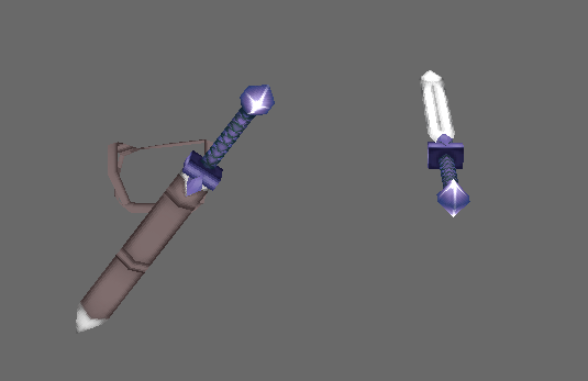 Toggle-able weapon options: fantasy blade 1 equipped, fantasy blade 1 sheath, fantasy blade 1 sheathed, strap