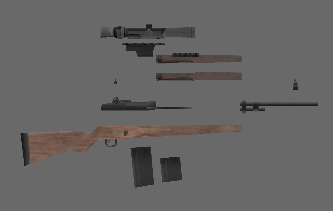 A PSX inspired M14 + M1A rifle with detachable parts and rails.